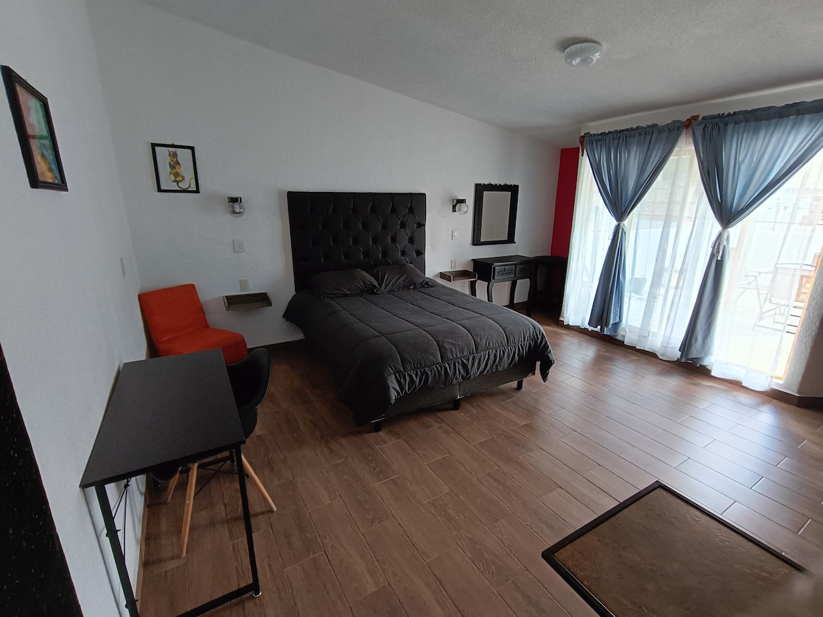 Relájate en este espacio tan tranquilo y elegantee el depto es planta baja y cuenta conun espacio extra para hacer (yoga) un azador compartido en la azotea, estacionamiento para su vehiculo, ojo no camionetas largas centros comerciales cercanos walmart y chedrawui el parque central esta a 15 min.