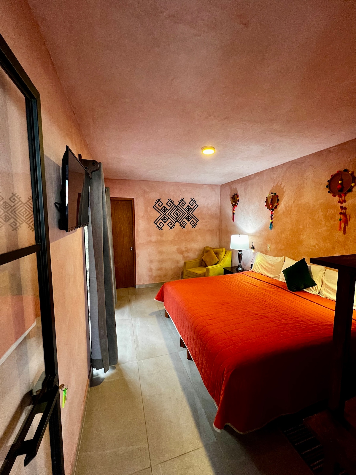 Cómodo y luminoso departamento con chimenea, ideal para disfrutar y descubrir San Cristóbal de las Casas. Ubicado en un barrio tradicional del centro, con fácil acceso a todo. Tragaluz y amplios ventanales que llenan el espacio de luz y calidez. Cuenta con cocina equipada, lavadora-secadora, escritorio e internet rápido, perfecto para trabajar o descansar en un entorno acogedor y auténtico.