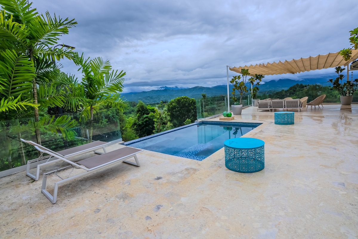 豪华私人别墅,带泳池和山景/距离市区30米