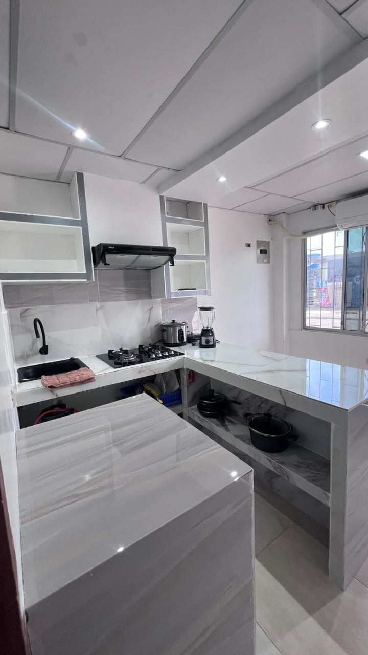 Alojamiento cómodo y totalmente equipado, ideal para estancias largas. Dispone de aire acondicionado, cocina con refrigeradora, TV y WiFi Starlink de alta velocidad. Cuenta con un dormitorio con dos camas y un ambiente adicional integrado de cocina, comedor y sala. Ubicado en un sector tranquilo y céntrico, a solo 10 minutos caminando del aeropuerto y a 3 cuadras del malecón. Frente al alojamiento hay una tienda para mayor comodidad. Capacidad máxima: 1 a 3 personas.
