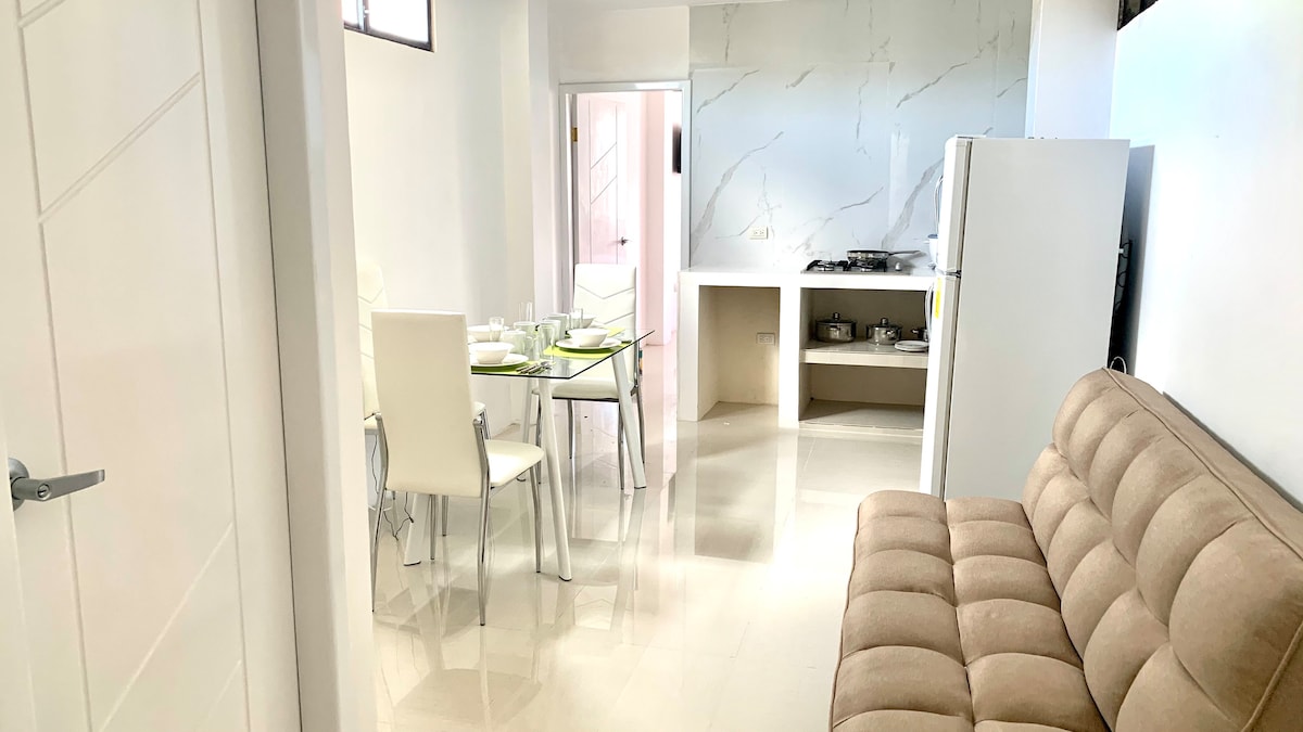 Departamento en una ubicación privilegiada, tranquilo muy acogedor cerca al Malecón y del mar, Restaurantes, mini market y farmacias, a 5 minutos del aeropuerto en vehículo, cuenta con wifi Starlink de alta velocidad, aire acondicionado y cocina completa.