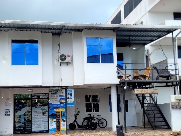The Galeodan Penthouse Suite occupies the entire top floor of Casa de Huespedes: Jardin de Helena (Helena's Garden), in a quiet residential neighborhood on the outskirts of town, just 5 minutes’ walk from the center and 2 blocks from San Cristobal’s most popular public beach: Playa Mann. Jardin de Helena is licensed by the Ministry of Tourism to issue salvoconductos.
