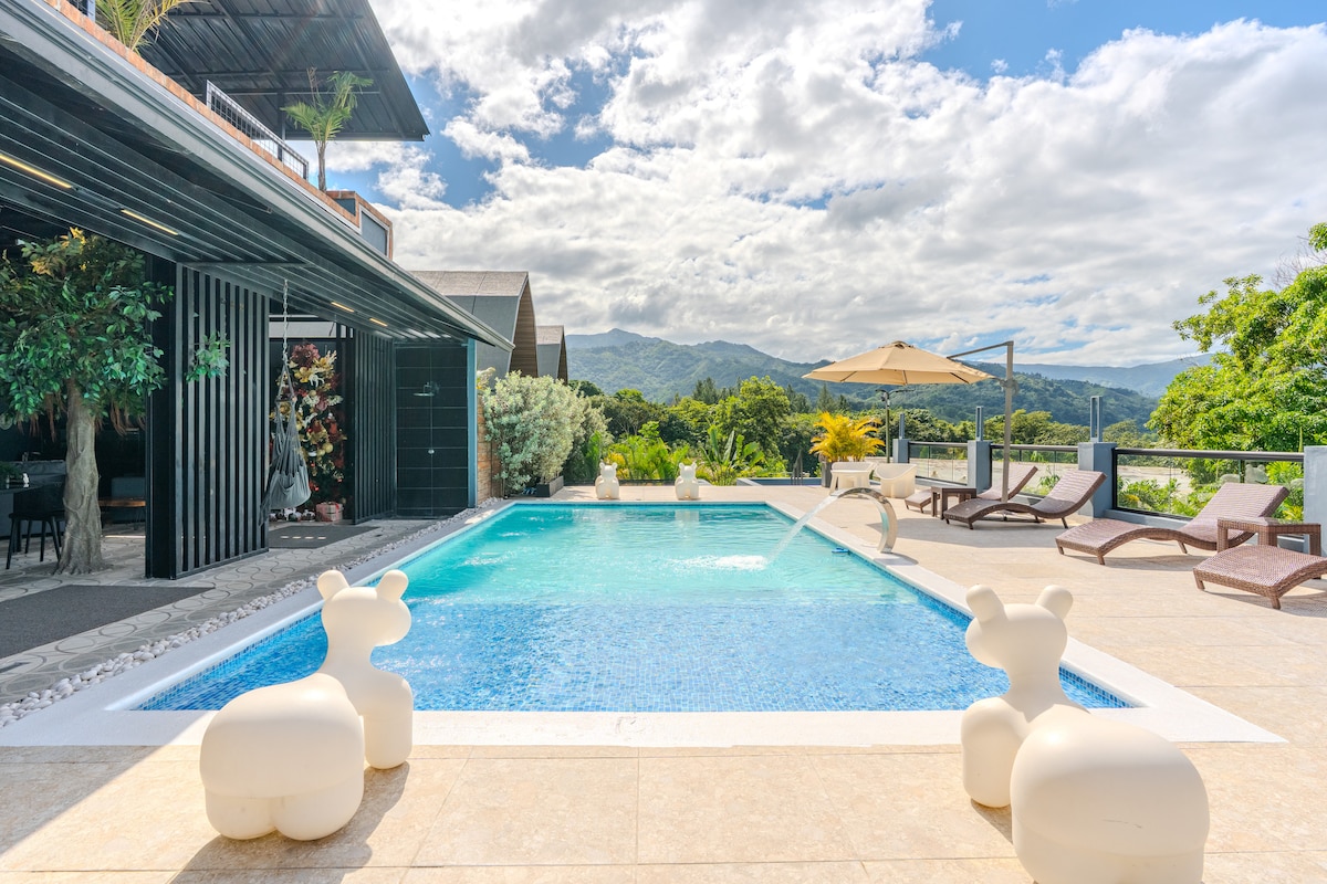 Escape to the Mountains, nature awaits! Immerse yourself in the luxury of this unique villa, surrounded by breathtaking views and designed for maximum comfort. Enjoy relaxing days on outdoor loungers and unwind in the private jacuzzi. Perfect for romantic getaways or family vacations, this space offers the perfect blend of privacy and convenience. Only 30 minutes away from Santo Domingo!