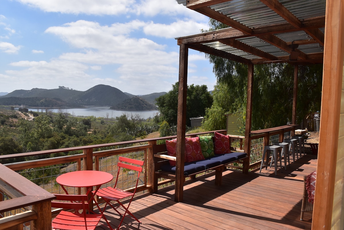 Tucked into the hillside by Lake Hodges, the tiny house is a romantic retreat or a place to unwind surrounded by nature, w/plenty of amenities so you don't have to sacrifice comfort. Lake & mountain views from inside & out-- private, large covered deck, dining patio, outdoor shower (& indoor), beautiful saltwater pool, & fire bowl. Though it feels like you're in a secluded retreat, urban amenities are just a few miles away. SD Zoo Safari Park, wineries, breweries & beaches all w/in easy reach.
