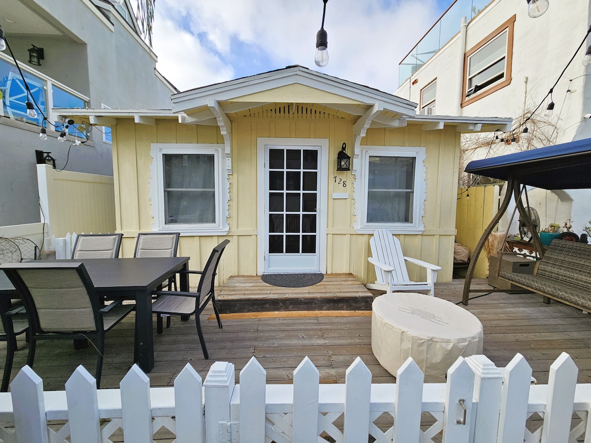 Have fun with the whole family for a classic OB stay. Primary bedroom has a king bed and the second bedroom is queen size bed. A freshly updated, air-conditioned, centrally-heated, non-smoking, family-friendly beach home. Perfect for your beach vacation, steps from the sand, private yard with turf, deck, and patio. Great for both day & nighttime adventures, walkable location just 100 ft from the sand, with a variety of stores & restaurants. Garage parking on site!
