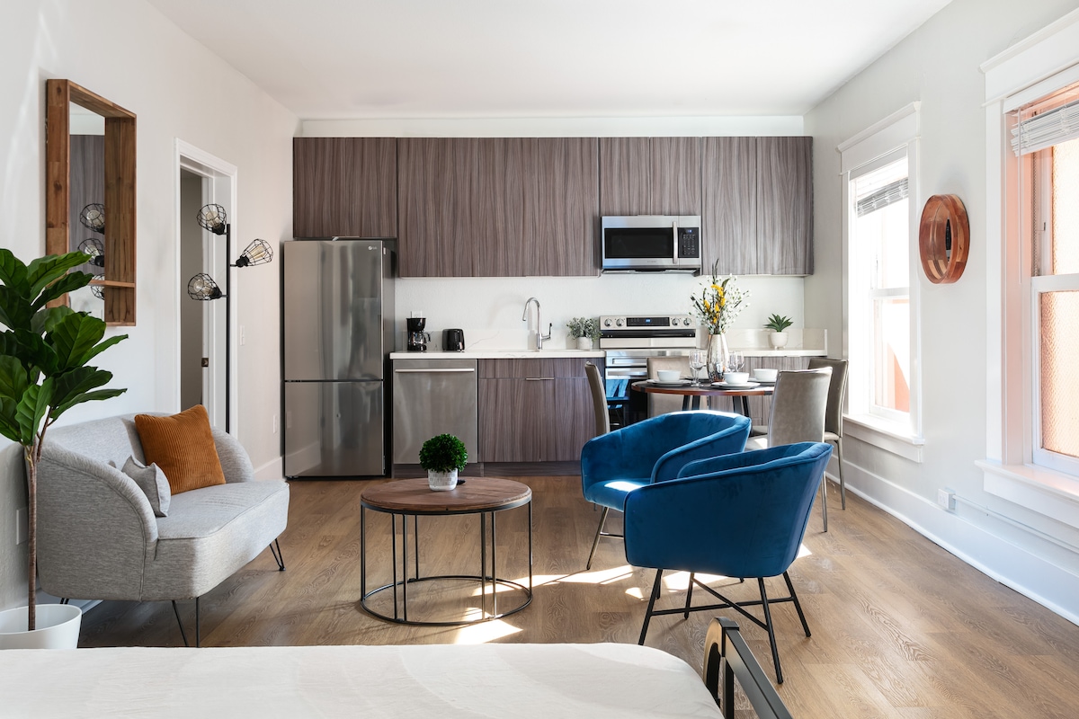 新房源现代单间公寓度假屋|标准双人床+全功能厨房