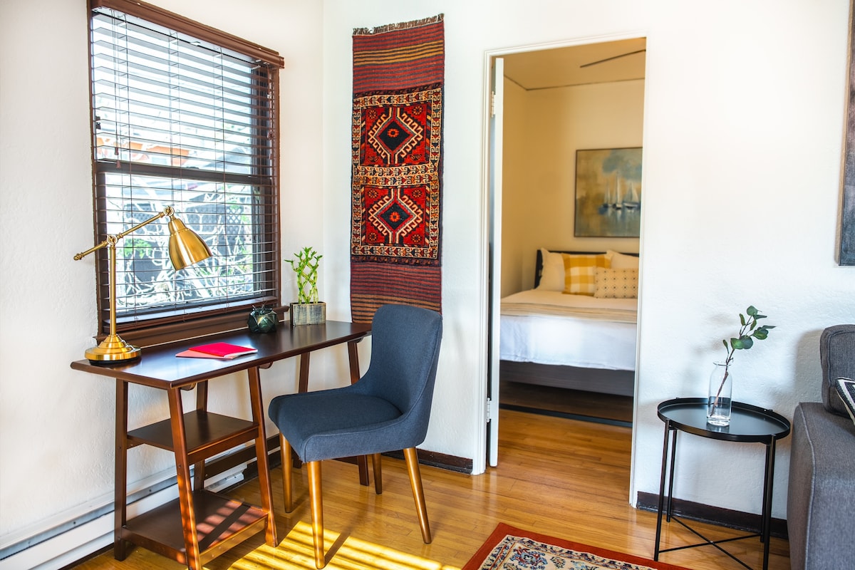 Welcome to our charming California studio that we designed to be comfortable, convenient and eco-friendly! It's tucked away on a quiet alley in a family-friendly, suburban neighborhood, offering plenty of privacy and parking! You’ll have everything you need here, including fast Wi-Fi, laundry machines, and a full kitchen. Whether you’re heading out for an adventure or staying in for a quiet evening, this studio is the perfect spot. We’d love to host you!