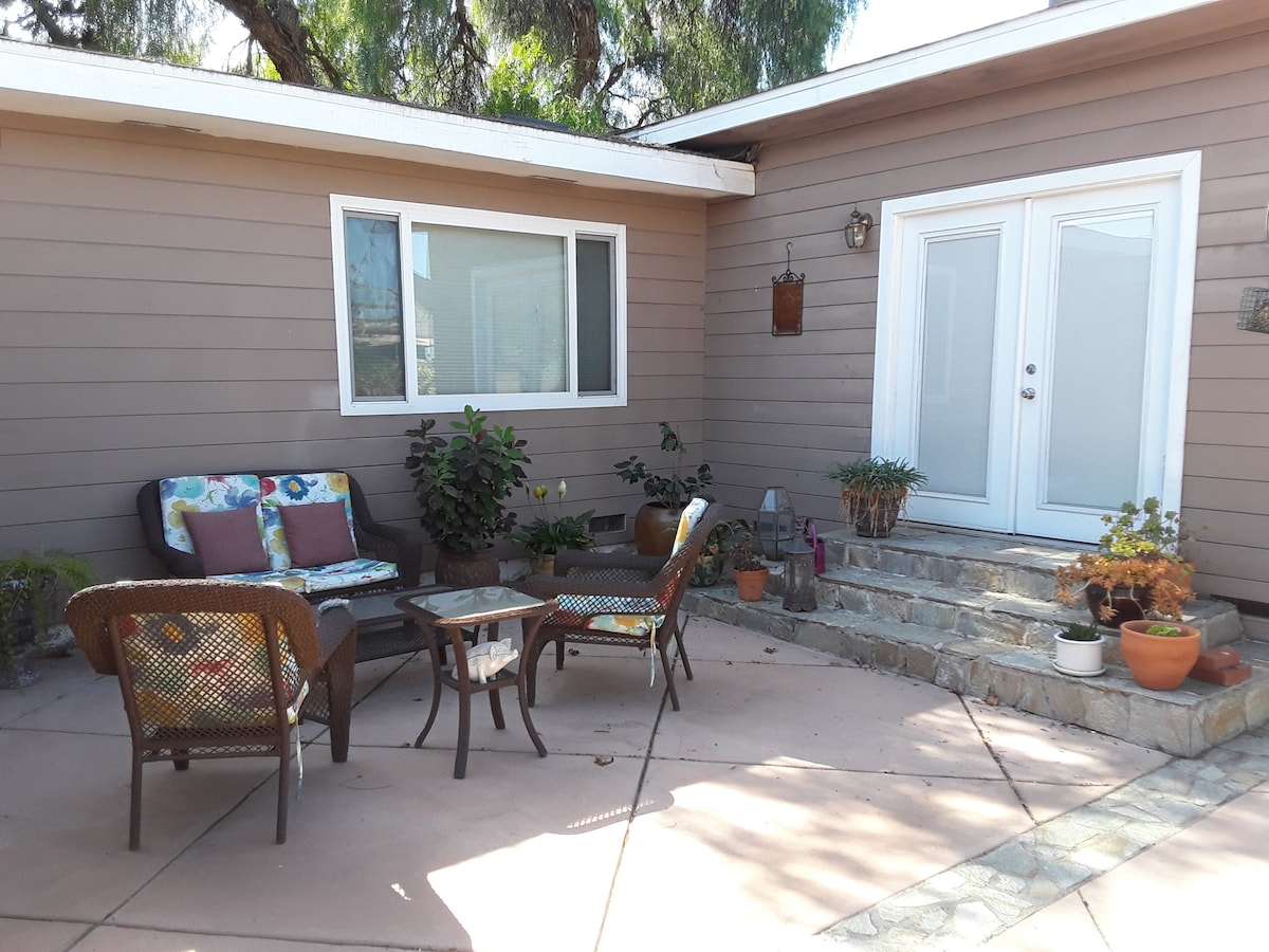 Our newly renovated beach bungalow has 2 bedrooms, a large comfy couch and a full bath. It is located 1 mile from the beach, 0.2 miles to Vons, Starbucks, Trader Joe's, restaurants and bars. Bikes, beach chairs and a beach umbrella are available for use. Private gated parking. Pets welcome.