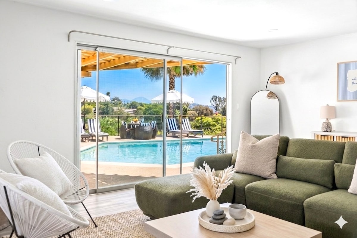 This is your perfect Guest House with a salt & heated pool + hot tub. Located in a super quiet & very safe neighborhood in beautiful San Diego, 15 minutes drive to the beaches, downtown, La Jolla, Zoo, stadiums, Sea World, Convention Center + more. Hike up Cowell Mountain next door at Mission Trails Park or around Lake Murray. Smart TV, wifi, two zone AC, full kitchen, W/D combo, top quality finishes & furniture. Everything you need for memorable vacation! No smoking or vaping on the property.