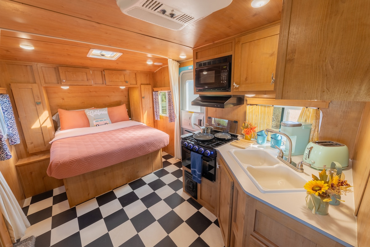 Cozy up in the bonita garden space RV & enjoy your time in San Diego! A home on wheels with everything you need for a comfortable stay:wifi, hot shower,a/c, self-check-in/out, parking & private entrance for your convenience. 26ft RV stationed inside the property in an urban farm setting. Plenty of room for up to 2 people, full size bed, dinette area, kitchen w/stove, microwave & fridge. Fire pit, private deck & plenty of outdoor shared space in the garden. BBQ & wash/dryer available per request.