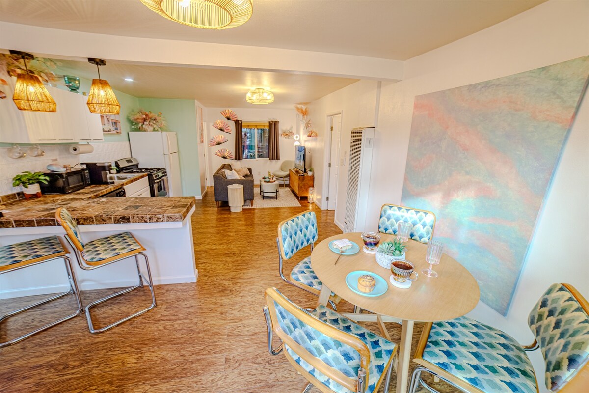 Enjoy amazing sunsets right from our balcony with unobstructed views of the Pacific Ocean! With a reverse floor plan, the kitchen/living/dining are located upstairs & bedroom down. There's lots of light, ocean breeze, + everything you need to feel at home. The interior has been thoughtfully curated with local art and modern beach feel. Soak up the ocean view from the living room, balcony, or walk across the street to the beach. If it's booked, check our other listing: https://abnb.me/I72YJLo2