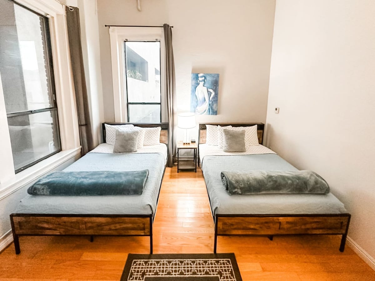 Historic (800 Sqft), This stylish place to stay is perfect for small groups. This unit is a massive bedroom and can sleep up to 8 guest. With 2 queen beds. Twin memory foam roll away beds (given when requested may be additional charge based number of guest). The décor was designed with one thing in mind.....our Tulum vibe IG seeking demographic. This unit will have several areas to take photos and post, it will be the home base for all of your down town adventures.