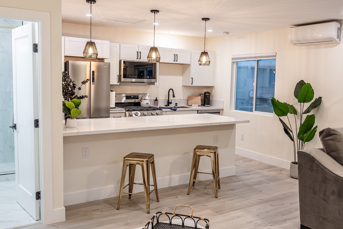 COTTAGE IN THE GARDEN - New! Modern! Find beauty and serenity in this special guest house in one of San Diego's most desirable areas! Flowering bushes, plants, olive tree and fruit trees seen from all windows. All amenities: WiFi, Cable, serving dishes and tableware, full coffee bar, Ninja Blender, Flat screen TVs, 100% Egyptian Cotton Sheets or Boll and Branch Sheets (used by 3 Presidents), Japanese Toilette and more. 15 minutes to Downtown San Diego and 20 minutes to the beach!