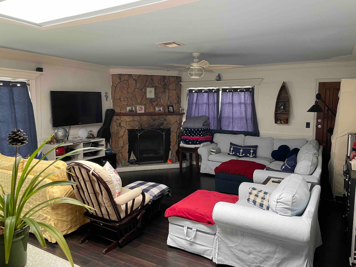 Come relax in this bright & spacious 1 bedroom detached unit with private entrance. This room has a king bed, fireplace, full bathroom, table & chairs, mini fridge/freezer, microwave, closet ,dresser, Tv and beautiful mountain views. La Jolla Beaches, downtown San Diego, the Zoo, and Sea World are 25 minutes away. Santee Lakes is just a short drive away where you can enjoy fishing, paddle boating, splash park, biking and picnic area. Mission Gorge Trails is also located just 5 minutes away.