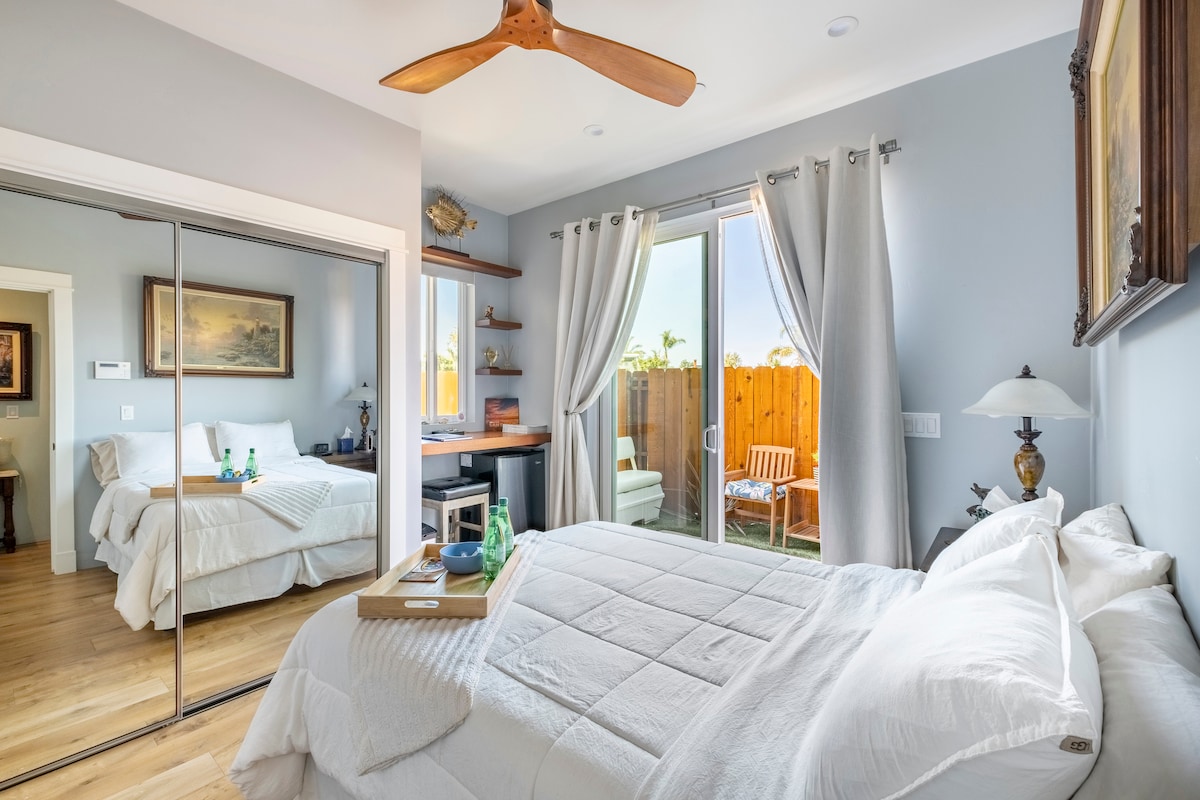 Unit 3 is a very small private room with a spacious bathroom. Although it is attached to our Main House, it is has with its own entrance. The room with front outdoor garden patio is perfect for business travelers, or someone who needs cool small space to relax and to sleep and unwind. We are close to all major freeways . 6 miles from Downtown, Convention Center, Airport, & Nearby Beaches .CHECK OUT OUR OTHER LISTING