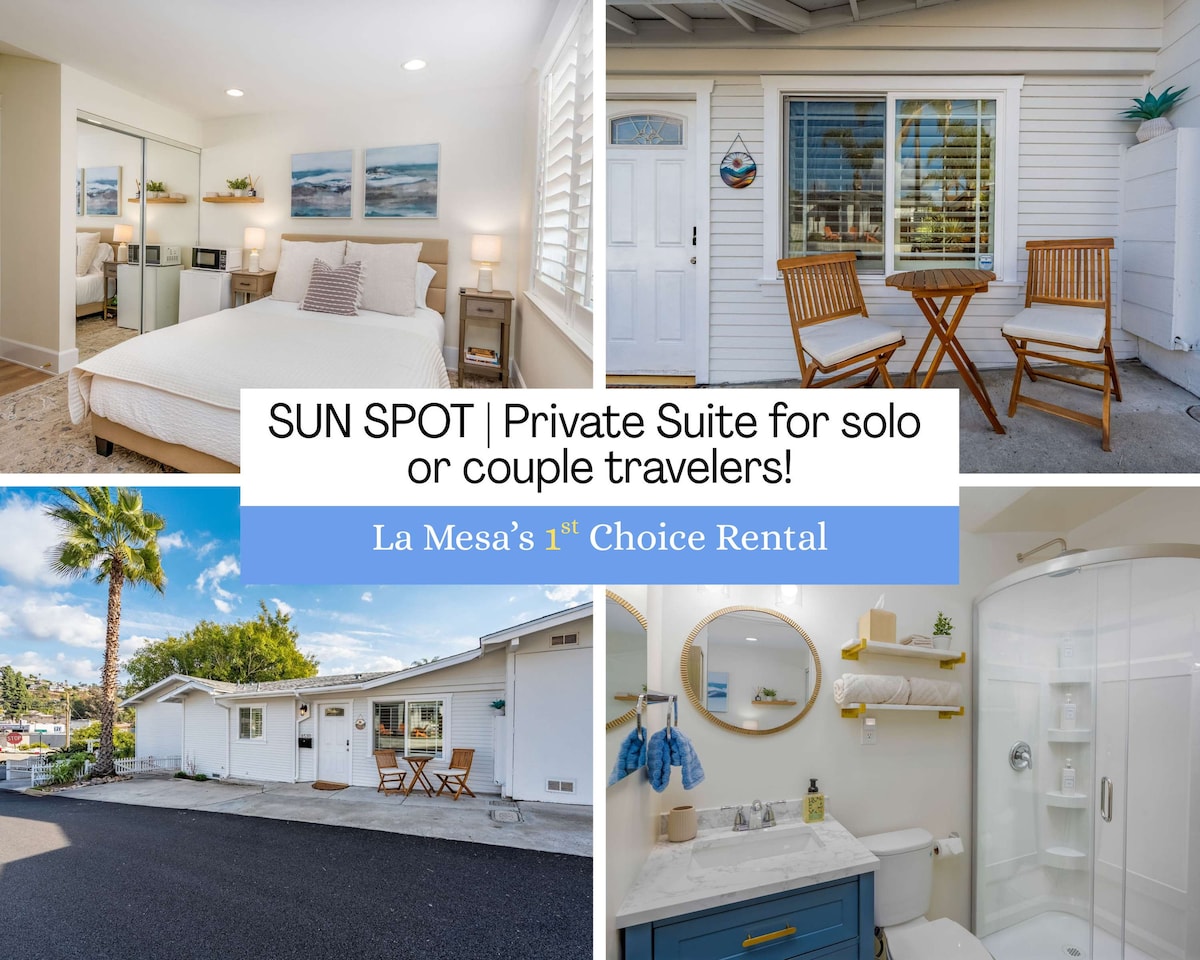 Sit out in the backyard then come indoors to relish leafy views from a triple-aspect living room. The apartment has a cottage feel with window boxes and wooden fittings. A hanging plant, and white linens provide a calming feeling. Awake to the songs of birds and explore our 1/2 acre of fruit trees, vegetable beds, and landscape. Yet most of San Diego’s attractions are just 5 to 10 miles away. The new kitchen is included in your space so you can prepare your own meals if desired. Cooking equipment included are a convection toaster oven, coffee maker, hot pot, a microwave, and an induction plate, pots & pans, kitchen tools, cutlery and dishes. We also provide coffee, tea, sugar, salt & pepper, cooking oil, and ice. This space is attached to our main home but you’ll have your own separate entrance and private kitchen/ living, bed and bath. We'd love to greet you and show you around when you arrive, but if we happen to miss you will have your own unique door code to get in. We’ve prepared a binder of information for guests and can help you plan for best use of your time. However if you prefer to be on your own we’re fine with that too. We have walked to downtown or to the nearest trolley, but unless you are walkers and out for exercise, you will probably want a car. There are now lots of bikes available for rent, but it will be uphill to get back to the house. Some of our guests have chosen to rely only on Uber, in which case grocery and/or meal delivery are helpful. If you have an afternoon or evening flight you are welcome to store luggage at our house after your 10 AM check out. We are in a hilly residential area with stores, restaurants and bus/ trolley access about 2 miles away, so you'll have the most flexibility if you come by car. If you choose to Uber, you can order groceries or takeout meals to be delivered.