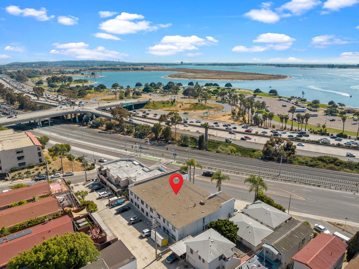 热水浴缸/1分钟到市中心/3分钟到科罗纳多/加大双人床/海滨