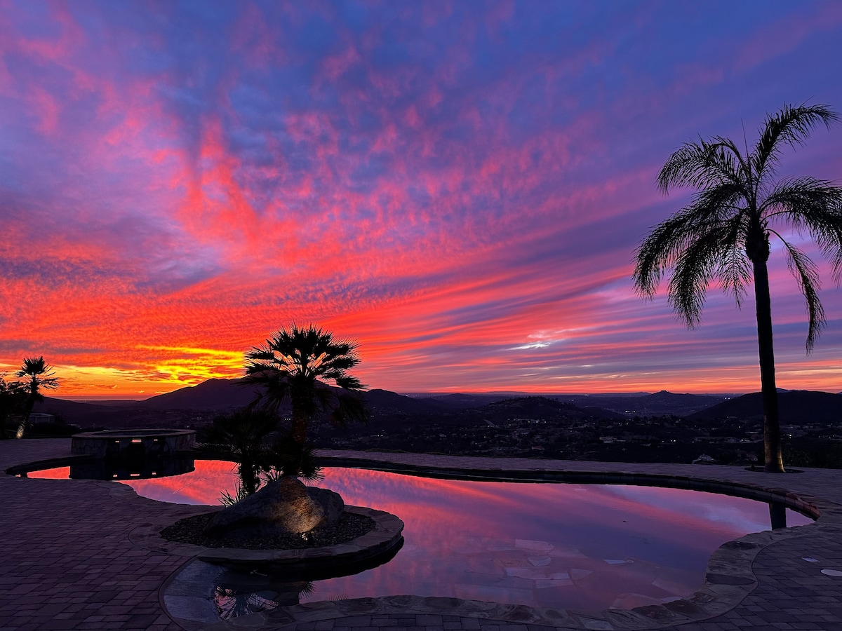 Fully gated, private home has 3 bedrooms and 2.5 baths, and offers amazing views.Take a swim in a saltwater infinity pool, or soak in the saltwater hot tub. Help yourself to 8 different fruit trees onsite, or lounge by the outdoor fire pit. Plenty of parking space. Shuffle board table for game entertainment. Walking distance from The Welk Resort, which offers 8 pools, 2 golf courses, a spa and restaurants. Attractions close by San Diego Zoo Safari Park and Temecula wineries.