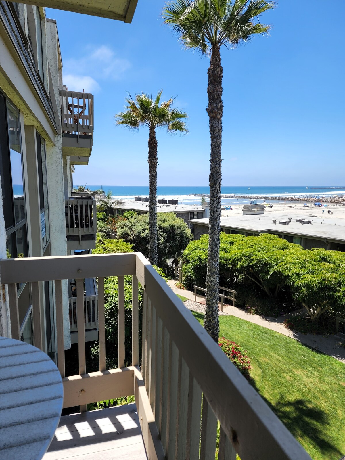 Patio on the Pacific has beautiful ocean views from the living room, master bedroom, and balcony. On a nice day in Oceanside, you can enjoy the sailboats going by on the Pacific from the couch! To relax and recharge, use the buildings pools and spas or enjoy the 5 min walk to the beach + strand. Enjoy working here with 200mbps Internet and a dedicated desk in the bedroom. Our condo is a corner unit on the top floor (accessible via elevator) of building G in the North Coast Village.