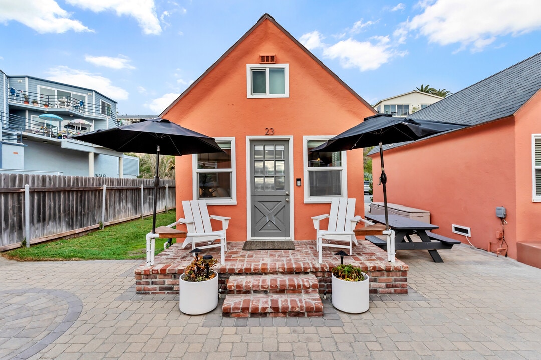 Newly remodeled 1940's cottage just 50 steps to the sand with fabulous beach and ocean views. Enjoy the ocean breeze from your front porch and watch people walk by. Go sunbathing and swimming, take a bike ride or a stroll on the beach, have a glass of wine and witness the most beautiful sunsets. We are located in a quiet residential neighborhood of Ocean Beach. This bright and cozy cottage has everything you'll need to feel at home.