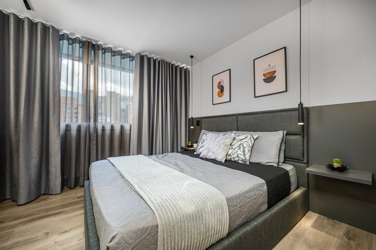 Luxury apartment with AC located in one of the best neighborhoods in Laureles. You can explore the area walking everywhere. "Unicentro mall" is just a 5-minute stroll away, and "Calle 70" is a breezy 15-minute walk. That's where all the local action happens - from awesome eats to meeting cool folks and tons of entertainment spots. / ¡Lujoso apartamento ubicado en uno de los mejores barrios residenciales de Laureles, a 5 mins del centro comercial unicentro, cerca de restaurantes y bares.