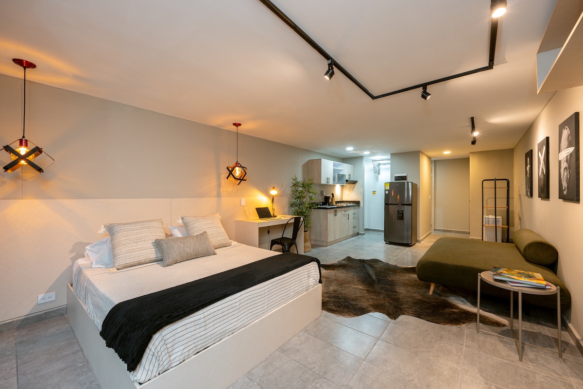 🛎️ ¡0% de tarifa de servicio en Airbnb! 🛎️ ✨ Exclusivo para quienes reserven con nosotros ✨ Disfruta de un espacio moderno, luminoso y acogedor, perfecto para viajeros y nómadas digitales. Combina estilo y comodidad en un ambiente abierto donde podrás trabajar, descansar o disfrutar de la ciudad sin complicaciones. Incluye: Cama doble súper cómoda, Escritorio ideal para trabajo remoto, Cocina equipada, Wifi rápido y estable, Ubicación estratégica cerca de cafés, restaurantes y transporte