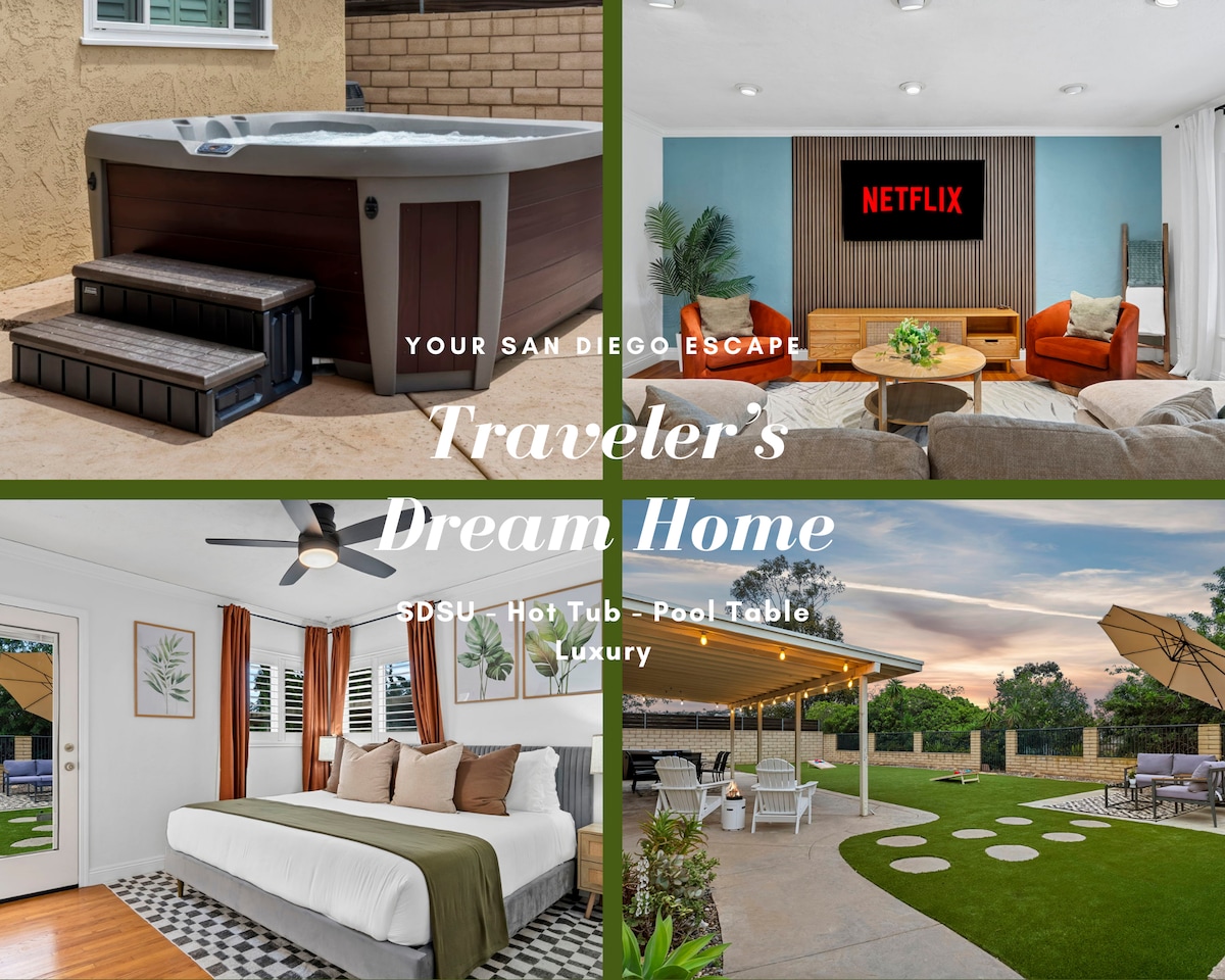 Enjoy the comfort of our renovated, spacious 3-bedroom (4bed)/2-bath getaway, which features a large private yard, hot tub, and fully equipped kitchen, bathrooms, and laundry room! Unbeatable location with easy freeway access and minutes away from bars, restaurants, shops, and the vibrant SDSU campus. SD airport and downtown attractions are only 15-20 minutes away. Perfect for a large family, big group of friends, or cozy home base while exploring everything San Diego has to offer!