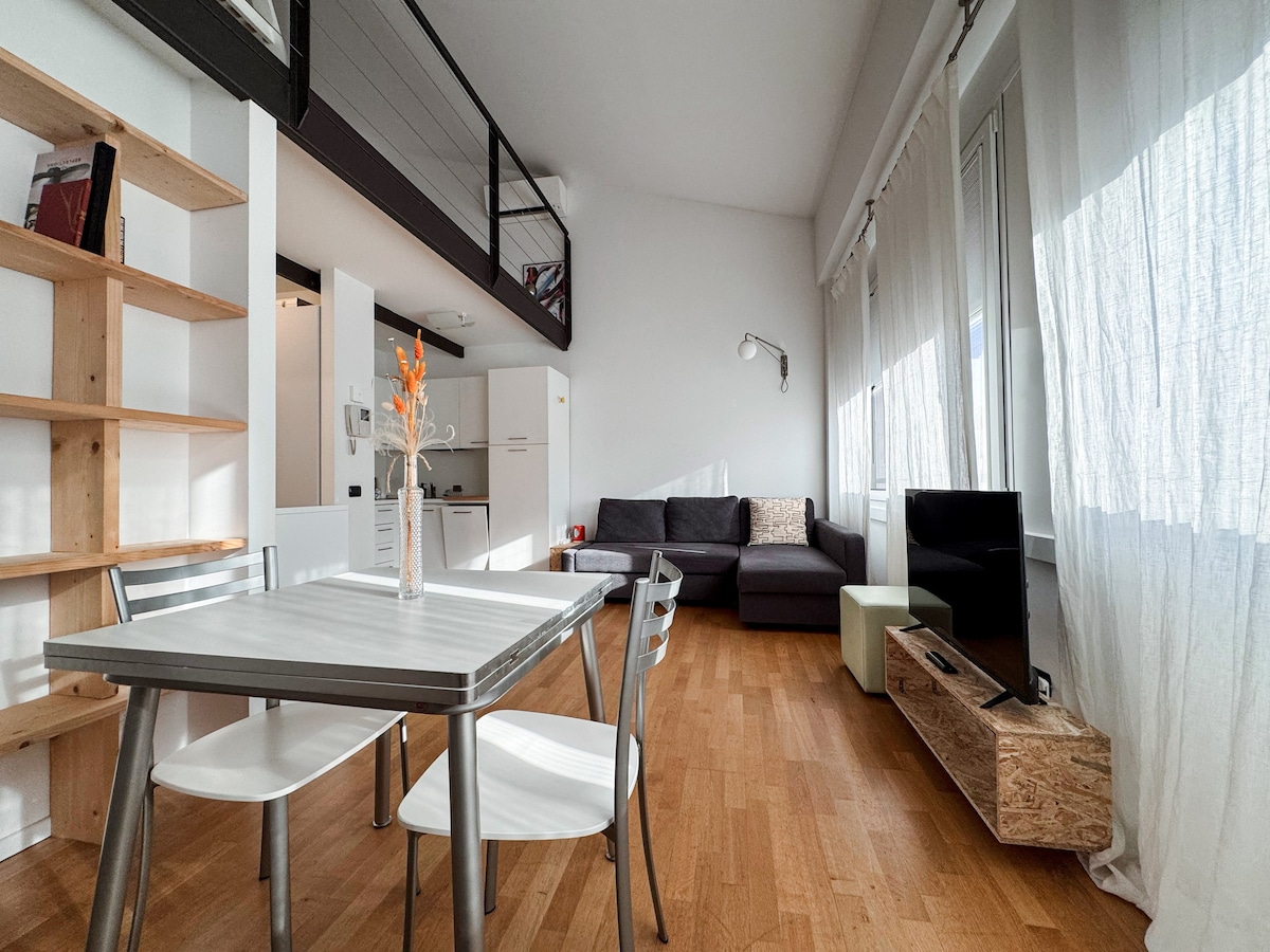 One bedroom attic situated in Milan city centre, close to Duomo. Very close to the Bocconi University and Statale University. The apartment is located in a historic silent building in a very pretty area of Milan. Kitchen, bathroom, bedroom on the mezzanine level and a spacious balcony. The apartment comes fully furnished with kitchen appliances and linen, air conditioning and sofa. Very short distance (2 minutes walk) from underground Pta. Romana.