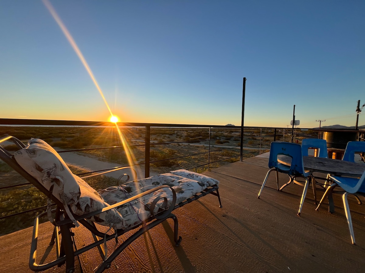 Casita Luna at El Dorado Ranch offers privacy, comfort, and stunning mountain & sea views. Enjoy your own driveway, entrance, and safe parking for 2 cars. Perfect for 2 guests, this cozy retreat features a private hot tub, spacious bathroom, cold A/C, outdoor kitchen with BBQ, compact indoor kitchen, foam queen bed, sofa bed, smart TV, fast WiFi, dining table/desk, mini fridge, microwave, fire pit, and a porch with outdoor dining set. Everything you need for a relaxing desert escape.