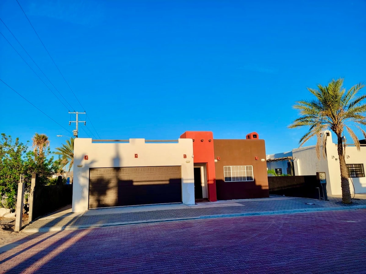 Beautiful oceanview spacious modern home! Space for the whole family, just steps from the beach. All the comforts of a cozy home with amazing views of the Sea of Cortez. The home is rented with the first 2 floors, inc. 3 bedrooms (Bed#1 Queen Bed+Toddler bed w/priv. bth - Bed#2 Queen Bed+Bunk (Full/Twin) and Crib+Bth in hallway) (Bedroom#3 in 2nd floor, inc. Queen Bed and Twin Jeep Bed and Sofa Sleeper+bath in hallway) 3rd Floor (2bd/2ba sleeps 8) is optional additional nightly fee applies.