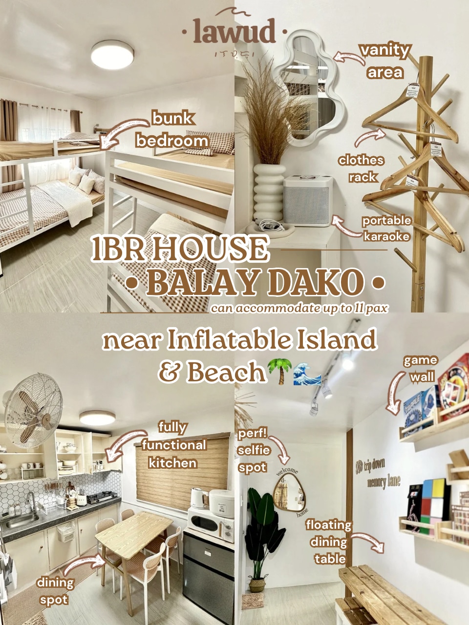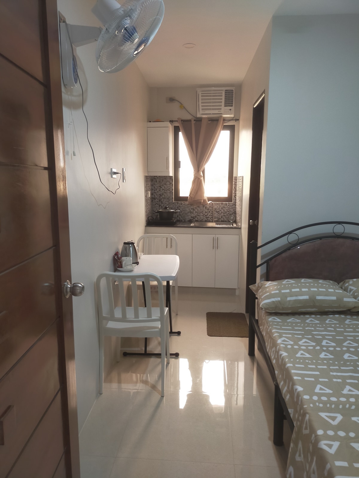 Affordable staycation within a 2-3-minute walk to the beach. Also conveniently located near restaurants, public market, cafes, resorts, bars, a laundry shop, grocery store, 7-Eleven, and a pharmacy. Easy access to public transportation.