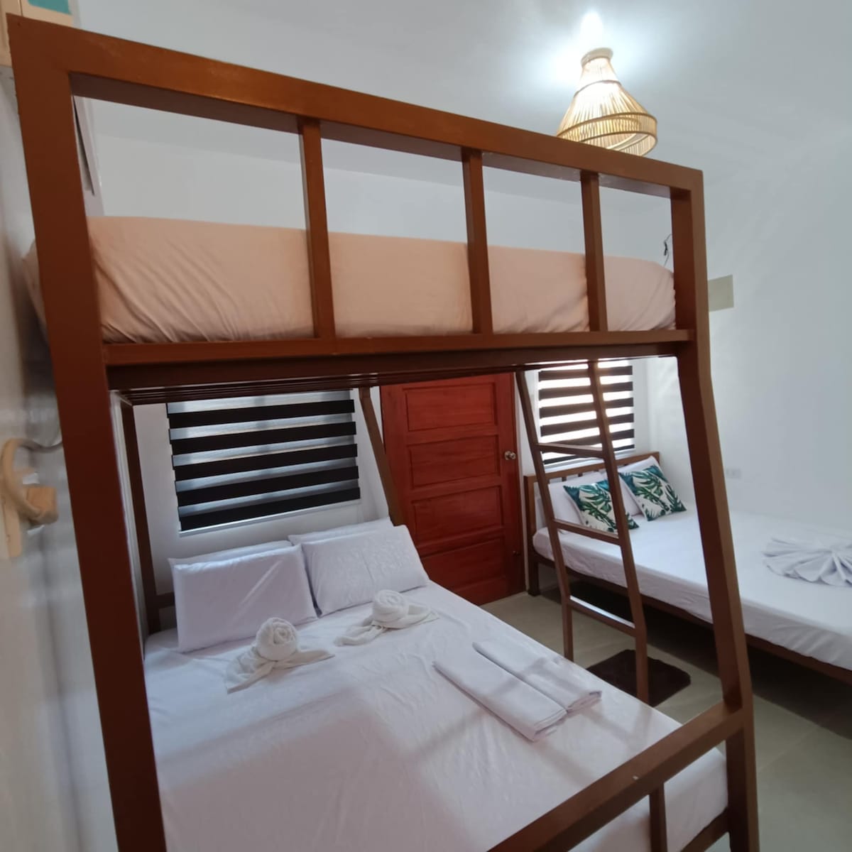 Room for 1-6 pax. Loft-type bedroom, 1 double bed, 1 single bed, 2 sleeping mats. No added fees or cleaning charges. Budget-friendly comforts of home with modern amenities. Easy Self Check-In process. Clean bedsheets, pillowcases, mini-towels, and blankets provided. -Fully Airconditioned area -2 extra fans provided -HD TV with Netflix and Amazon Prime Videos -Fast Wifi