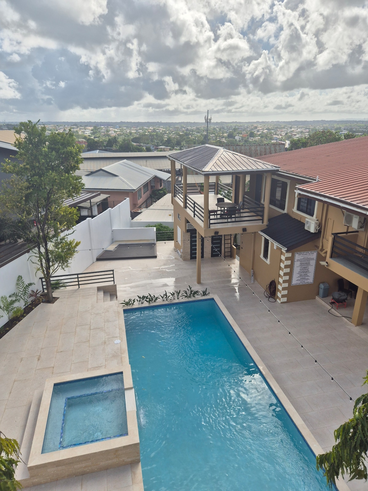 This suite is absolutely incredible, with ready to go appliances, fully AC, beds, Tv, Dinner/Living room area with a mini bar for entertainment. On compound grocery store, walking distance from two gas station and recreational sporting field. Located in the heart of San Fernando city, 3 minutes driving away from the water taix and deluxe coach public bus. Prefect for a small family or a group of friends who are looking for a safe and secure environment when visiting Trinidad.