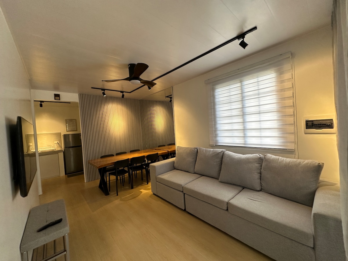 Step into comfort and style with our Auburn Unit! This chic unit features a sleek white dining table, a cozy dark grey couch, a stylish white center table, and a matching white TV stand, all beautifully set against elegant wood grain flooring. Located just a 6-minute drive from the vibrant surf scene of Urbiztondo, San Juan, The Gunyah, La Union is the ideal spot for your coastal escape.