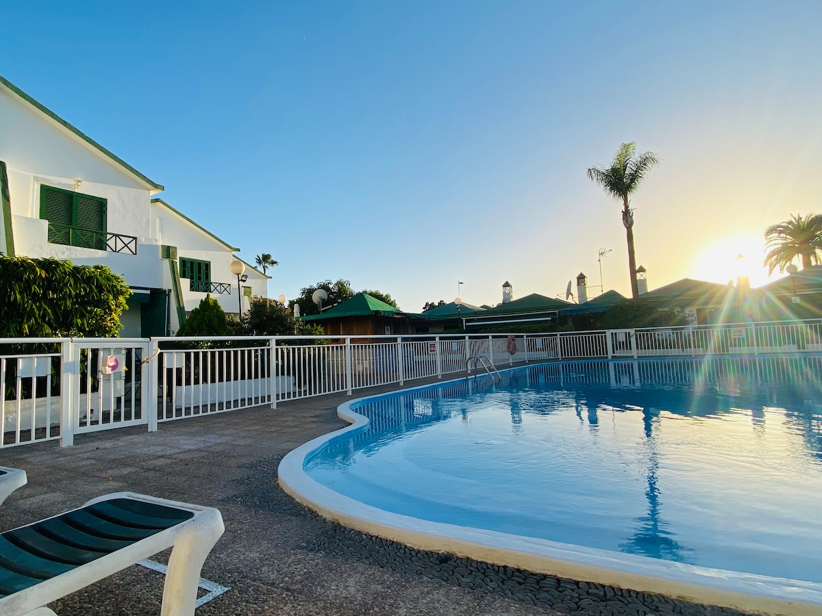 Bright and very quiet bungalow, almost inside the Maspalomas golf course, in a residential complex. All on a level with no stairs! Gorgeous gardens, pools and solarium. Restaurants, supermarkets and more nearby. Complete satisfaction and pleasant stay with all the comforts of a house very equipped. One bedroom, recently refurbished within walking distance to the dunes and beach. Ideal for walking, cycling, etc. Very welcoming. Great for couples.
