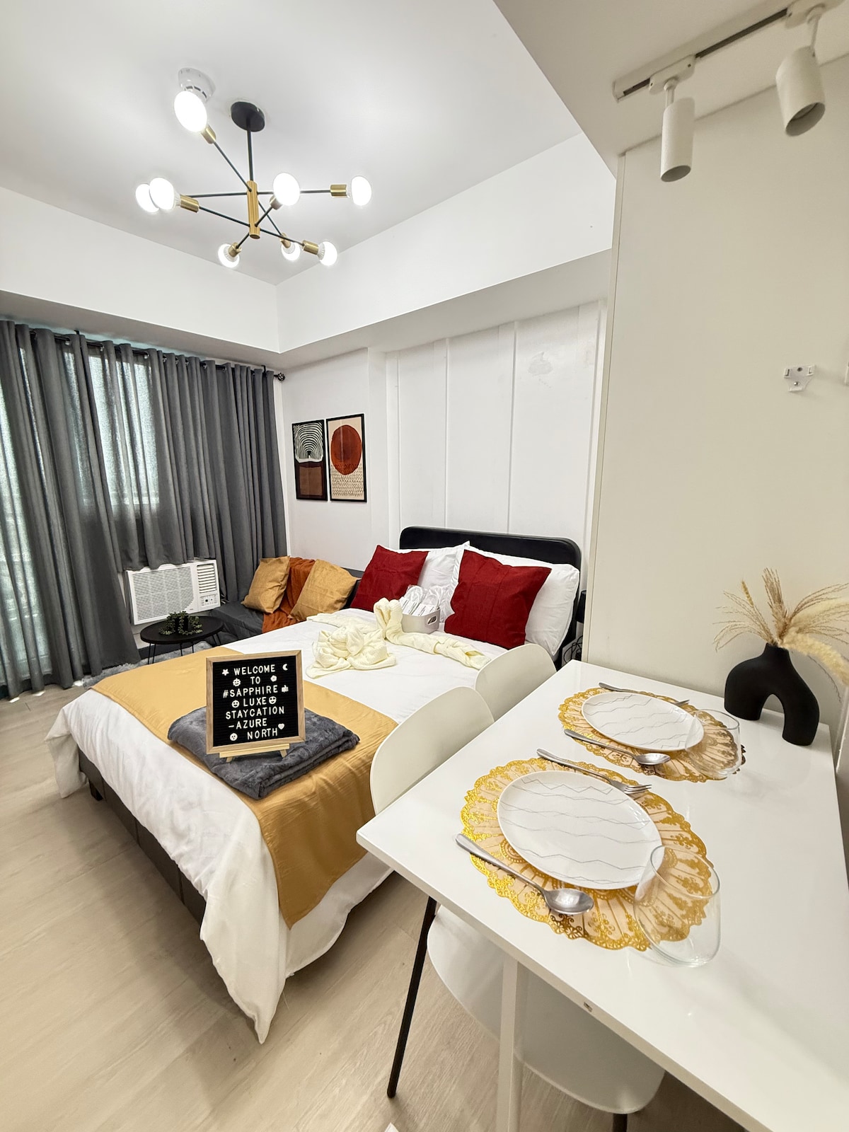 Escape to a modern romantic retreat at Azure North Pampanga. This stylish unit features a spacious balcony with stunning pool and city views, perfect for your wine nights or morning coffee. Enjoy cozy interiors, ambient lighting, and a serene vibe ideal for couples, families or solo unwinders. Located in a premium building with resort-style amenities. Your dreamy staycation starts here.