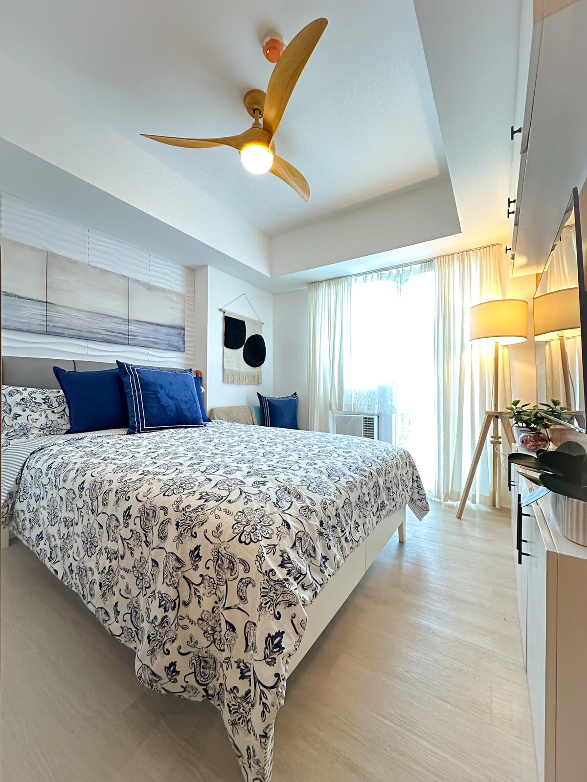 Whispering Waves Staycation at Azure North Pampanga. Please read full description before booking. Chic boho-inspired condo: vibrant colors, cozy textures, and a laid-back vibe. Your perfect retreat awaits. 𝐌𝐚𝐱𝐢𝐦𝐮𝐦 𝐨𝐟 𝟒 𝐚𝐝𝐮𝐥𝐭𝐬 𝐚𝐧𝐝 𝟏 𝐤𝐢𝐝 𝟑 𝐲𝐨 𝐛𝐞𝐥𝐨𝐰.