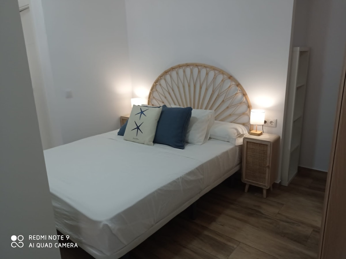 Apartment very close to the beach, less than 10 meters. Freshly painted with plastic and anti-mold paint. Fully equipped with kitchen, living room, three bedrooms and a bathroom. Ideal for families. Includes sheets, towels, kitchen utensils and WIFI. A cleaning and disinfection protocol has been implemented with cleaning products of recognized quality to guarantee a safe stay.