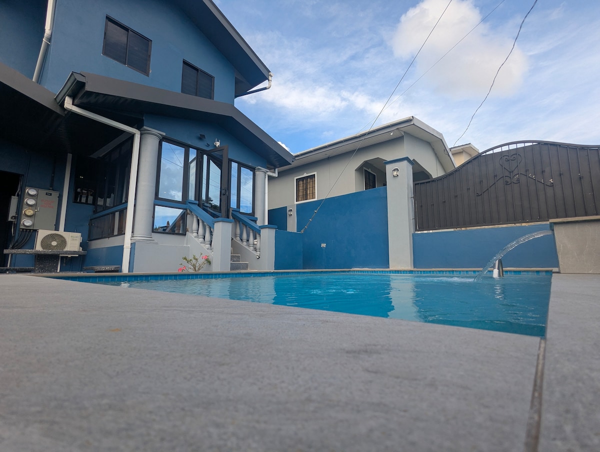 This 2640 sq ft home is ideal for a large family or group. Situated in the Palmiste Estate, with walking distance to food court, supermarkets, pharmacies and fresh vegetables a outdoor brick oven is available for the bread and pizza enthusiast.Bring the whole family to this great place with lots of room for fun.