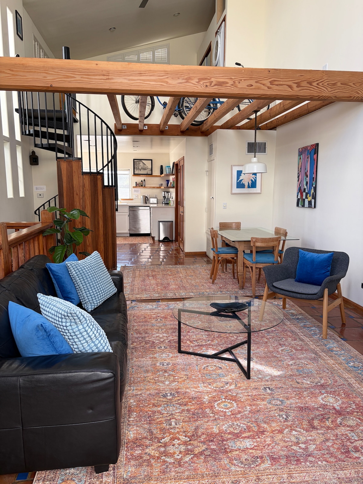 Please note the following details about our loft in the vibrant Arts District (1st St. and Vignes St). Cross streets can be checked before booking. - Conveniently located 30 mins from LAX - Just a 20-min drive from Hollywood - Only 10 mins away from the Staples Center Immerse yourself in a unique art experience at our loft, adorned with curated pieces from renowned artists, including graffiti and digital art.