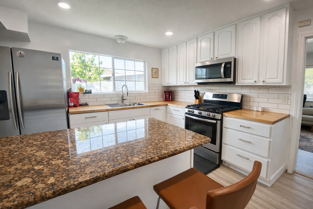 Fully renovated in 2022, everything is new. This stylish 2nd-floor condo overlooks vibrant Santana Row - the jewel of the Silicon Valley/South Bay Area with great restaurants, shopping, movie, spa, salon, and many entertaining options just downstairs. There are 1 queen, 1 twin and 2 large sofas. The entire space has been renovated - kitchen, bathroom, floor, paint, lights, and all new appliances. High speed WiFi and ex-large screen smart TV.