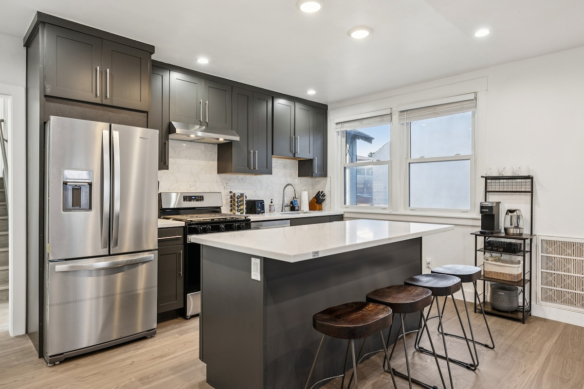 Centrally located & newly renovated! Quick Drive to SF’s Top Spots: • 15 mins → Bill Graham Civic Auditorium • 17 mins → City Hall & Civic Center • 18 mins → SOMA & Moscone Center • 20 mins → Union Square & Chase Center • 20–22 mins → Oracle Park • 15 mins → SFO by car, 20 mins by BART This SPACIOUS home offers: An intimate backyard retreat with cozy seating 3 comfortable bedrooms & 2 modern bathrooms Fully equipped kitchen and dining space for group meals