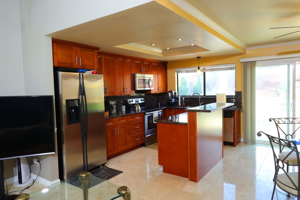 Quiet 3 BR 2 BA home w/ lovely yard & garden. Patio & garden tables ea seat 4. Master BR has private BA with lg tub & 2 person shower, private toilet rm, & spacious walk-in closet, private entrance from garden patio. 2nd BR is spacious has full bed + desk. 3rd BR has twin trundle beds & private entrance from front yard. Queen sofa bed in LR. Kid/dog friendly front yard. EV chg on site.** Please do not apply if you are a smoker as this is strictly a non-smoking property.**