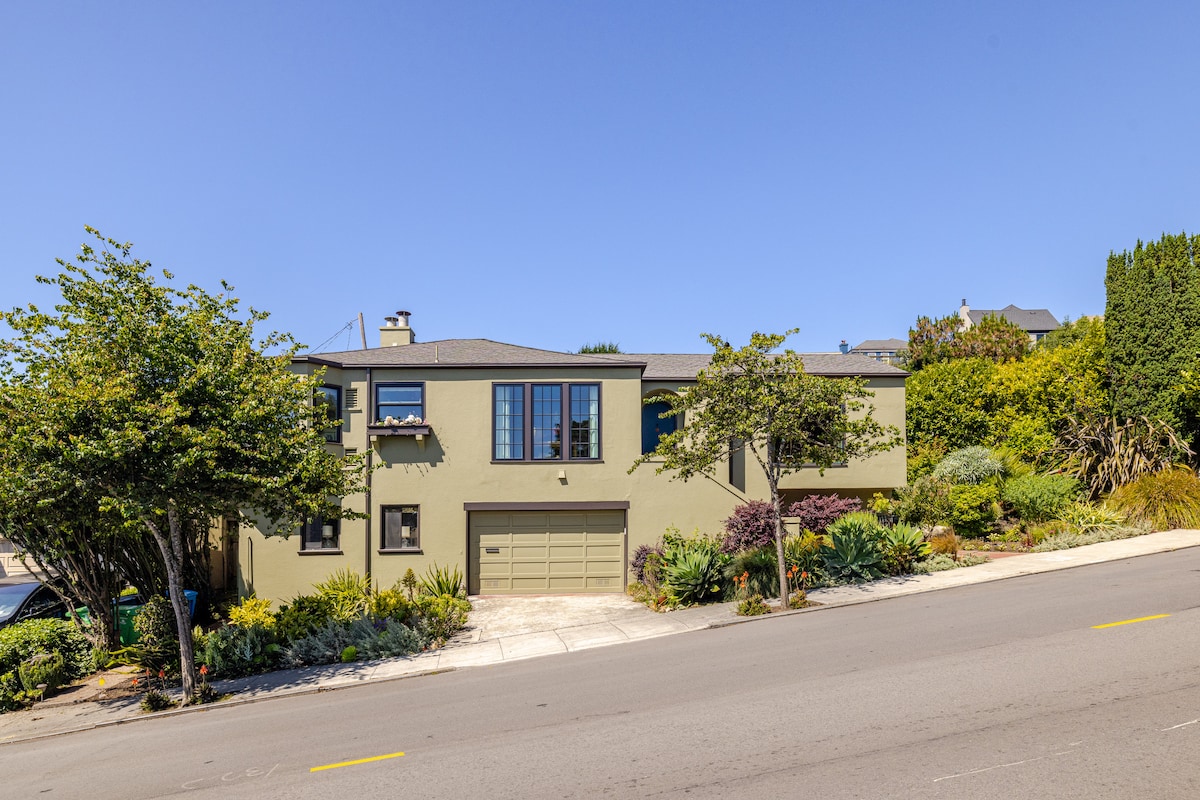 This luxurious suite with kitchenette features a beautiful view towards the Bay and Golden Gate Bridges, designed especially for a romantic getaway or anyone needing a relaxing space. Soak and play in the two-person jetted tub, enjoy the gorgeous large bathroom. Easy street parking is always available, and garden lined exterior stairs take you to the private entry and patio. A laundry is provided for guest use only. Hikes into the canyon below or neighborhood above are a special treat.