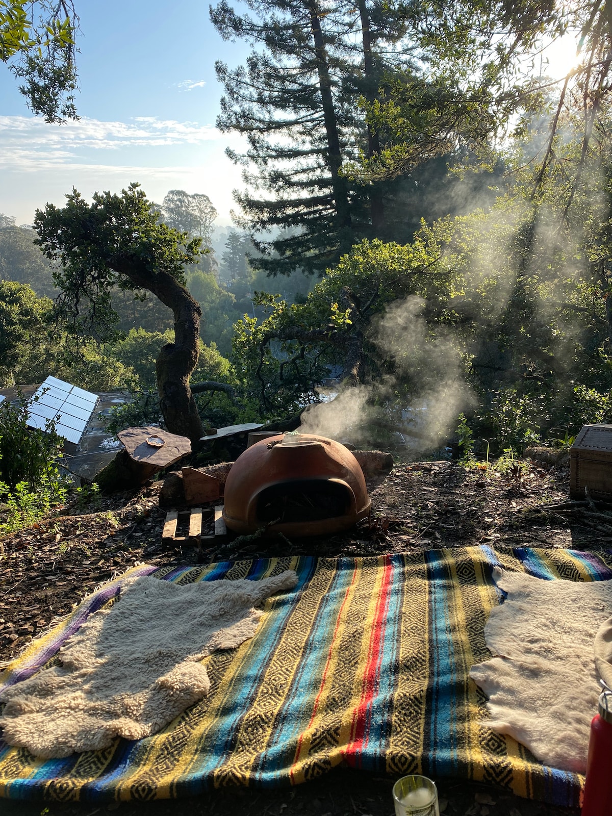 Wrapped in winter stillness and gentle warmth, this studio and cedar sauna cocoon invite deep work, creative renewal, and emotional unburdening. Recently remodeled and allergy-aware, the treehouse sits on protected open space at the base of Mount Tamalpais. Offering trails from the back door, clean air, a stove-heated barrel sauna, and a deeply calm, dog-friendly setting, this winter sanctuary is for writers, artists, and anyone standing at the threshold of change. Create. Restore. Transform.