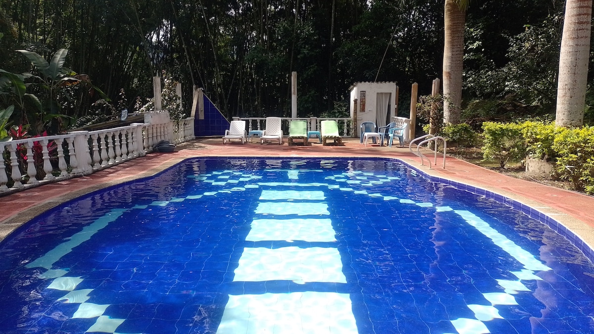 La finca maneja varios Opciones de alojamiento. La cabaña golondrina es uno de ellos cuenta con cama doble y Un Camarote de 3 Personas . Baño privado. Vista al rio. Adicional la finca tiene piscina, zona de bbq, salón de juegos con rana bolirana mesa pinpog, futbolín rockola, bar Zona wifi. Además acceso a playa de rio sendero Ecológico y te divertirás y descansaras mucho en este cómodo lugar para quedarte. Rodeado de Los sonidos mágicos de la Naturaleza al 100 % capacidad maxima 5 personas ,