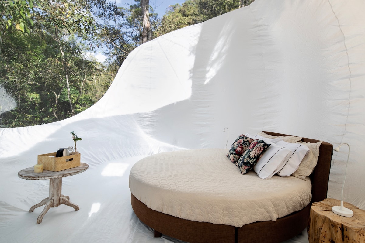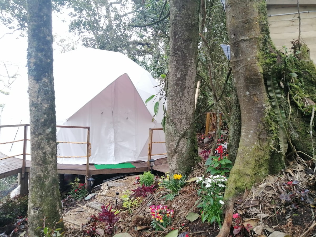 Escape from the outside world with a stay in our new Glamping Dome, which offers luxury accommodation with Jacuzzi and terrace, immersing guests in a natural environment" • View towards mountains, forests. • Heated hydromassage Jacuzzi • Private bathroom with hot shower • Wifi • Catamaran mesh • Restaurant .pool ¿Ready to sleep in the world's #2 rated room? Just one hour from Bogotá Colombia!