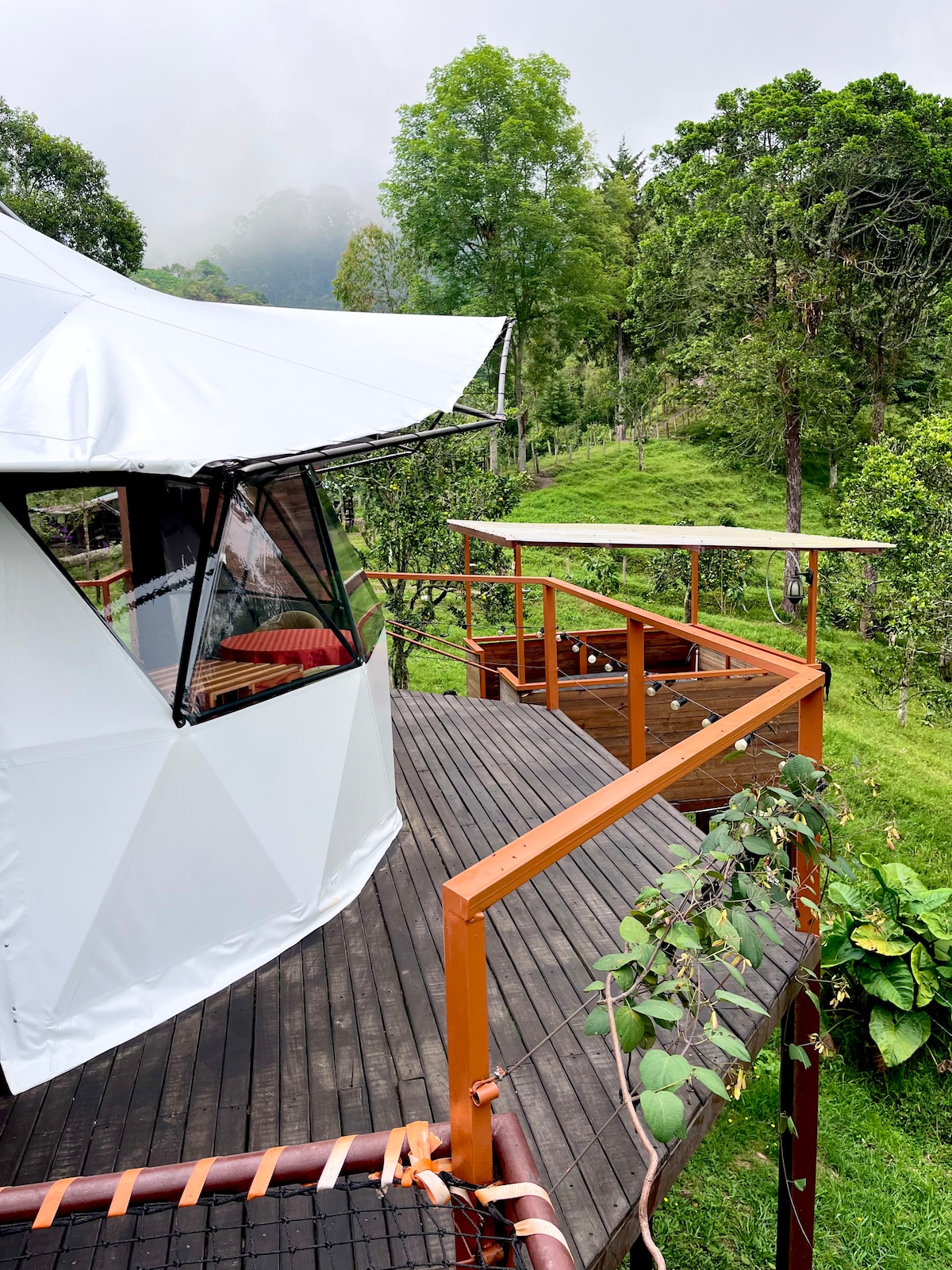 Este espectacular glamping te permitirá vivir una experiencia romántica y relajante en medio de la naturaleza. Esta minicasa cuenta con una terraza amplia, su alcoba con salida a un balcón con malla y un baño con tina al aire libre, para que puedas disfrutar las maravillosas vistas que tiene!! NO SE ENTREGAN TOALLAS. Ten en cuenta que estás en zona tropical, así que recomendamos que lleves repelente, porque pese a que fumigamos, puedes encontrar bicho e insectos!