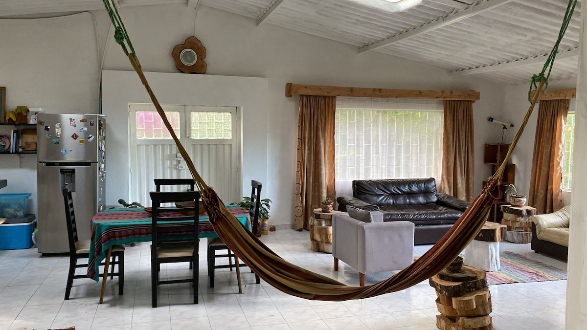 Nestled on a lush one-acre property just a short drive from Bogotá, our charming country house offers the perfect blend of rustic tranquility and modern comfort. Whether you’re seeking a peaceful retreat, a creative workspace, or a family getaway, this spacious home surrounded by nature is your ideal sanctuary. Secluded Serenity Spacious Comfort Nature at Your Doorstep Bird watching Perfect For: Families looking for space and nature, Remote workers in need of inspiration, Groups of friends