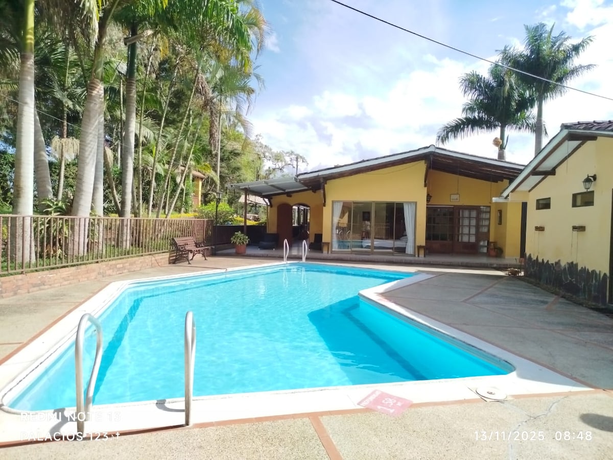 Relájate con toda la familia en este tranquilo lugar rodeado de naturaleza. Esta linda casa de 3 niveles cuenta con 6 alcobas, cada una con baño propio. Cuenta con piscina, kiosco con horno para asados, zona para fogata al aire libre, cancha de volleyball, zonas verdes, canchas de tejo, senderos, árboles frutales y mucho más, para que tengan una estadía increíble!! Y si les gusta acampar, hay una zona donde pueden poner sus tiendas, hacer uso del baño ubicado allí y de la cocina que es abierta!